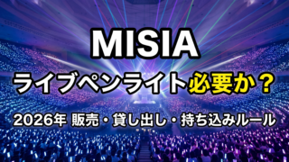 MISIAライブ2026のペンライトは必要なのかを解説します。販売の有無、貸し出し方式、専用アプリ、持ち込み可否、注意点までわかりやすくまとめました。